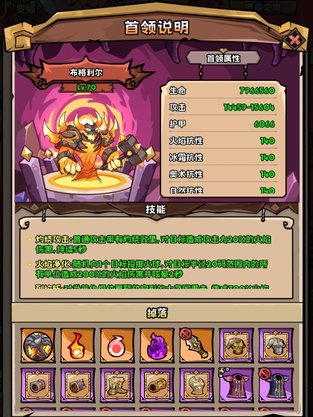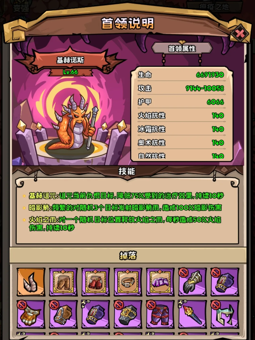 技能一:地狱犬,进入战斗BOSS靠近玩家后,召唤一只地狱犬,伤害较高,地狱犬血量低于20%会自爆,跟小石头自爆一样。