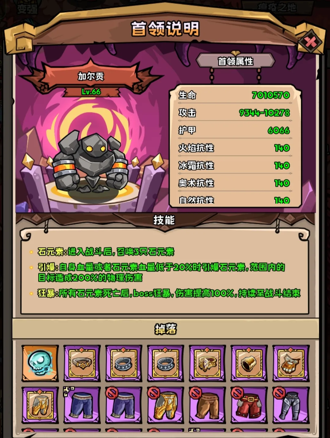 技能三:小石头人全部死亡后,BOSS狂暴,伤害增幅100%,永久。