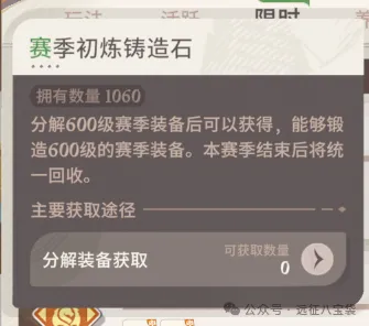 因为打造600级装备使用的赛季初级锻造石紧缺