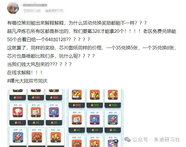 曙光重临新老区端午活动奖励居然不一样?同花费仅拿一半资源纯怨种?有新区水友在社区发文称,这次端午节活动新老区奖励不同,刚开始我也以为只是没有老区才有的道具,毕竟新老区进度不一样。但仔细一看,相同的道具和花费,新区能获取的居然只有老区的一半!