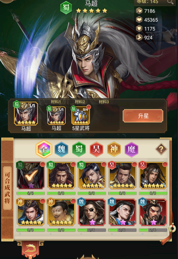 1.武将升星大厅可以将低星武将升星为同名高星武将,4星可以升为5星,5星可以升为6星。