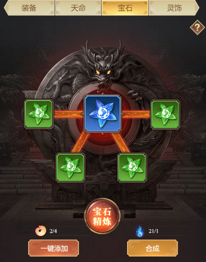1、同类型的4颗宝石合成会产生更高一级的同类型宝石。