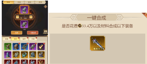 3. 一键合成会将当前所选中的装备类型下的所有装备合成到其能够提升到的最高品质。