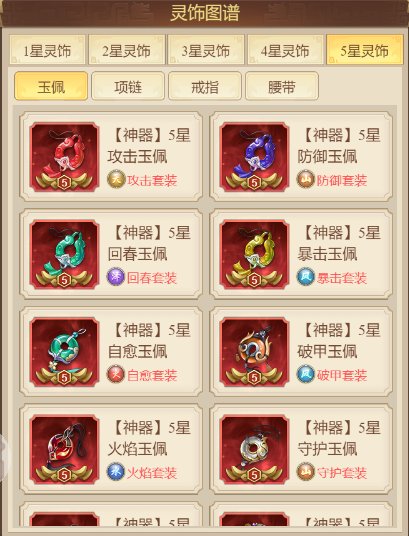 可以通过灵饰图谱查询各个灵饰的属性和套装