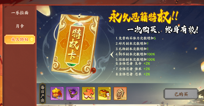 同时忍者之路可提升游戏内部分玩法资源获取