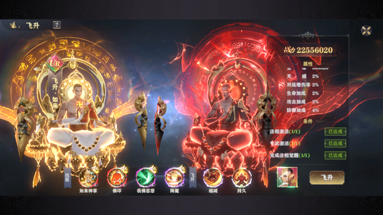类似法相的一个变身技能,品阶可从人物左上角标签判断强弱