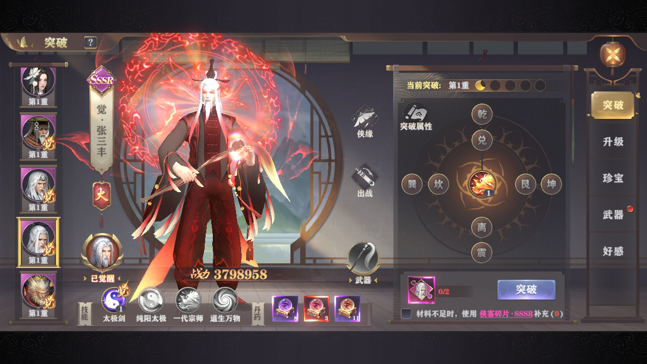 珍宝养成可提升侠客特殊属性和克制属性伤害;侠客也存在对应克制关系,所以必养