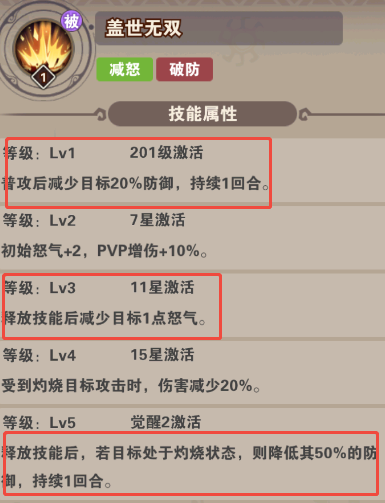 技能:单体爆发并减怒、被动增怒,封能(封怒)