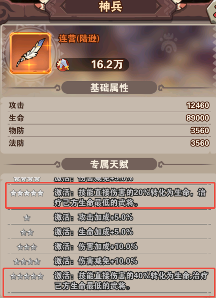 神兵:治疗生命最低的武将